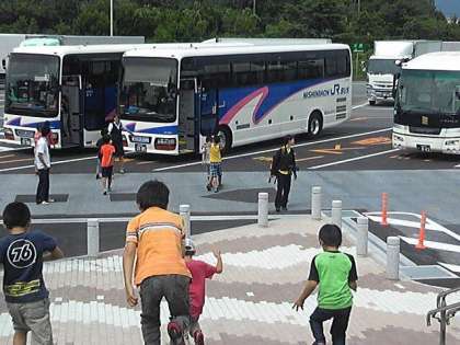 1日目バスは高速道路を順調に進み,10時に安濃サービスエリアでトイレ休憩です。みんな元気です。