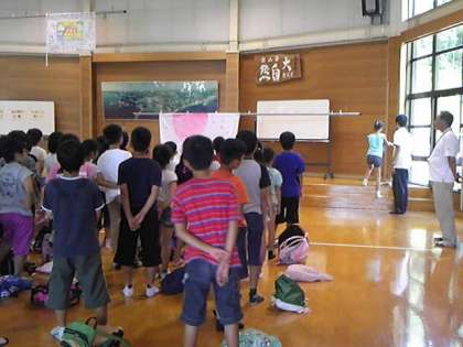 ・午後1時30分から,みさきの家のプレーホールにおいて4年生は入所式を行いました。