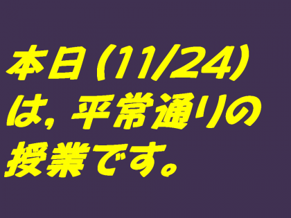 先週はインフルエンザによる欠席が多かったですが,3連休を挟んだ今日(11/24)はまだ欠席数はあるものの学級閉鎖するほどではありません。り患している人は,十分な休養を取って静養に努めてください。