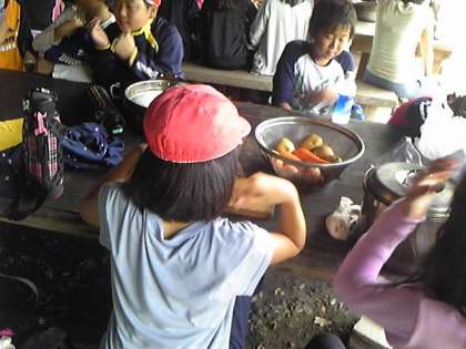 ・昼食の後は,夕食に向けて野外炊事です。みんなで頑張ってカレーライスを作ります。