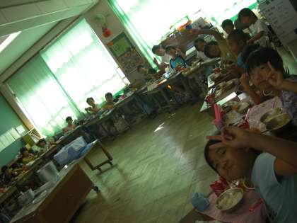 今日は前期さいごの日だったので,みんなで輪になって給食をいただきました。