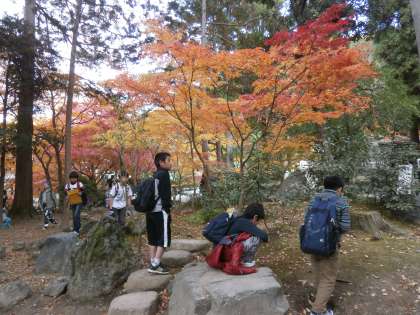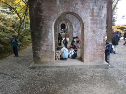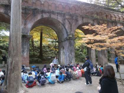 水路閣につくと,そこには美しい紅葉も広がっていました。絶景とも言える水路閣を見学できました。見たり触ったりとでき,とても充実した社会見学になりました。