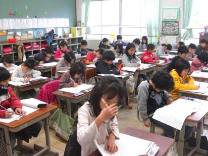 3年生は初めてのジョイントプログラムです。いつものテストとちがって,少し難しかったようです。時間いっぱい最後までしっかり考えました!