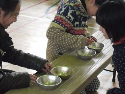 中間休みに高学年の「豆つまみ大会」をしました。5個の豆を容器に移し替えるリレーです。応援の声援を受けながら,クラスから選ばれた5人が一生懸命頑張りました。