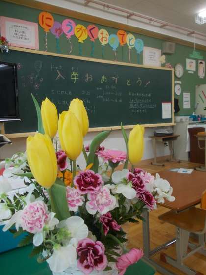 たいよう学級には今年新入生がありました。花がきれいで,落ち着いた雰囲気です。