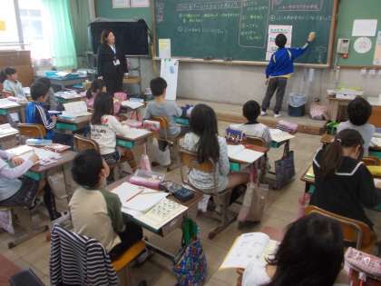 算数科の『わり算』3年で初めて学習するわり算。「わる」ってどういうことか,活動を通して考えている様子を参観していただきました。