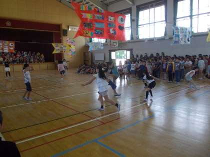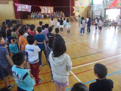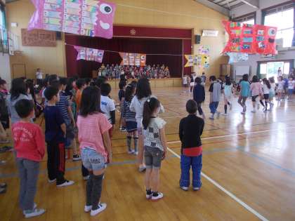 お祝いを発表しました。楽しい遊びを実演紹介しました。