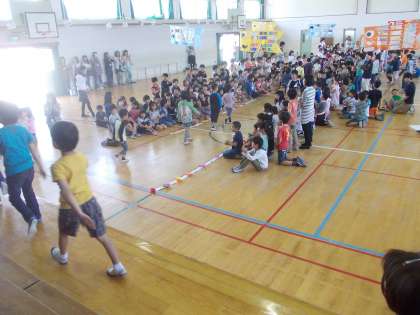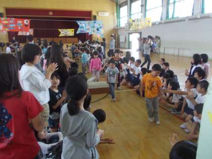 中央の花道に上級生が集まりました。1年生は,少し照れながら退場しました。