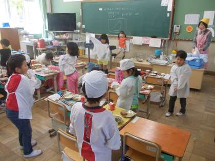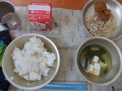 久しぶりに給食に牛乳が登場しました。1年生の給食当番も,すっかり板についてきました。