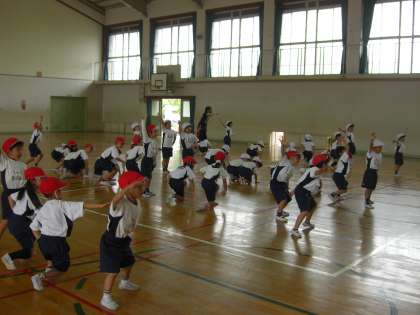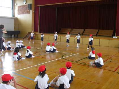 みんなふりつけを覚えるのがとっても早く、かけ声も大きな声で言えました。