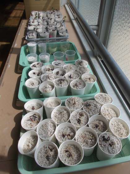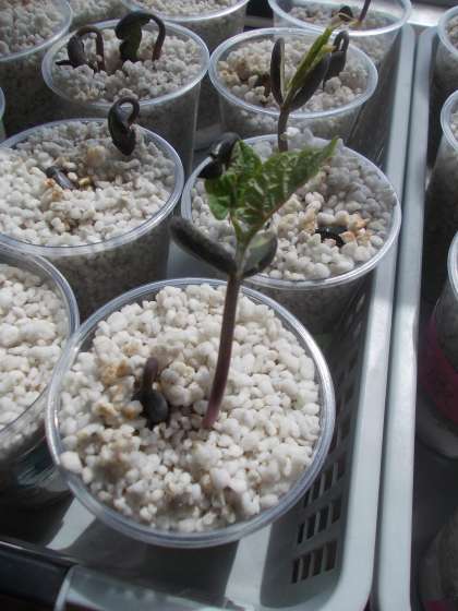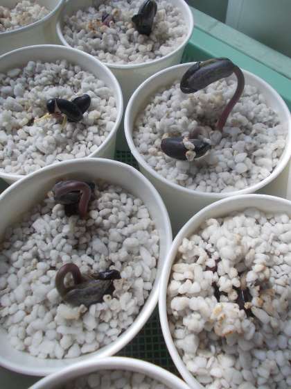 愛情も含めて考えられる発芽条件を全て与えて育てた『マイ豆さん』の発芽が始まっています。1日違いで植えた日が違うので,1組の『マイ豆さん』の方が大きく育っていることが分かります。まさに『一日の長』です。