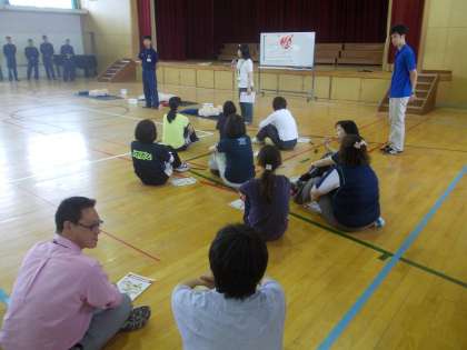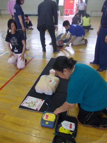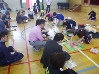 プールの季節を前に,西京消防署のご指導・ご協力で,普通救命講習を受講しました。心肺蘇生法,AEDの使い方を実習しました。本校にもAEDが設置されていますが,出番がないことを願っています。