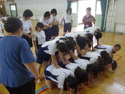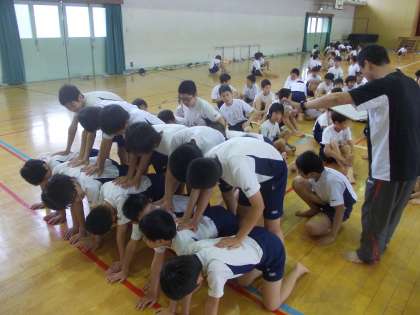 組体操の練習が佳境に入りました。今回は立体ピラミッドの様子を紹介します。