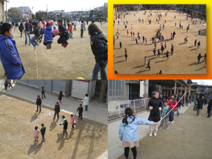 本日の2校時の”冬の集会”に続いて,中間休みには同じ縦割りグループで楽しく遊びました。運動場や中庭で,長縄跳びやボール遊ぶなどして高学年が低学年を上手にリードしていました。