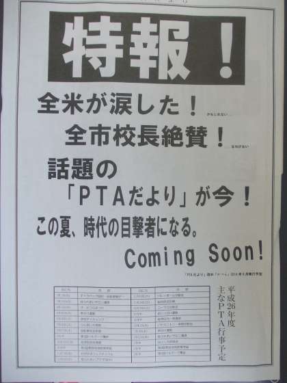 PTAから特報の号外が発行されました。ぜひお読みください。