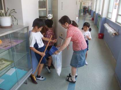 4年生が先生の指導のもと,ロッカーを動かしてロッカーの裏を掃いたり・拭いたりして掃除をしてくれていました。見えないところまで隅々まできれいにしてくれていました。
