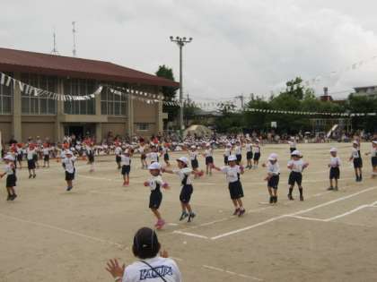 午後の部1番は1年生の玉入れです。玉入れの前に踊るキュートなダンスに