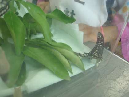 運動会の日の朝,1匹のアゲハが成虫になっていました!