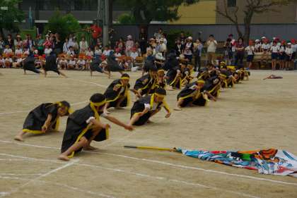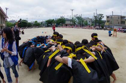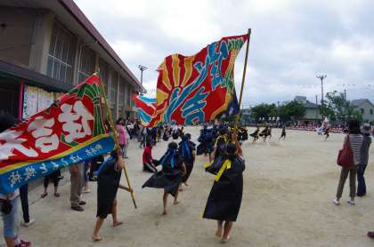 大漁旗をはためかせ桂の4年生が踊るロックソーランが始まります!