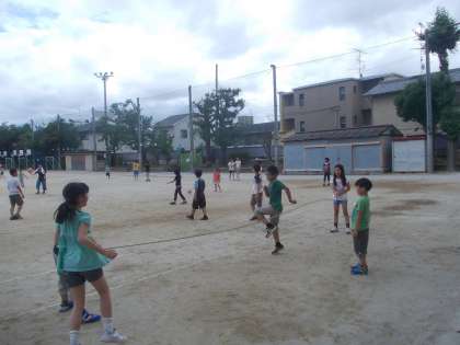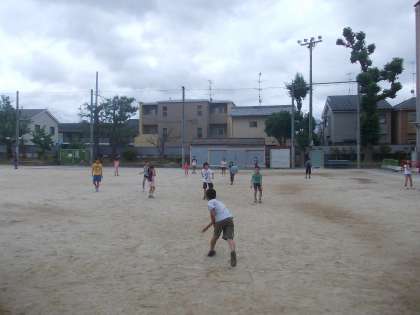 縦割りグループで中間休みを楽しく過ごした『なかよしタイム』。運動場が遊び場所に指定されたグループの様子です。