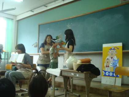今日は待ちに待ったぱれっとさんの読み聞かせ。なんと今回は学年そろっての読み聞かせです!「おかえし」という絵本を読んでいただきました。音楽もあり,子どもの特別出演もあり・・・笑顔あふれる読み聞かせでした。とっても楽しかったです。