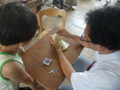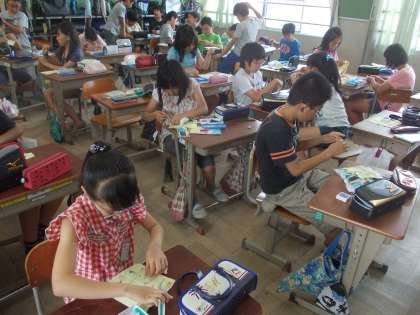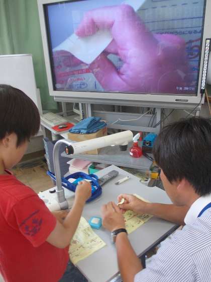 5年生が,糸通し・玉結び・玉止めに挑戦しています。今までの経験の有無で,ずいぶん手つきに違いがあるようです。