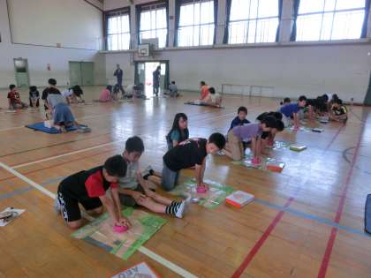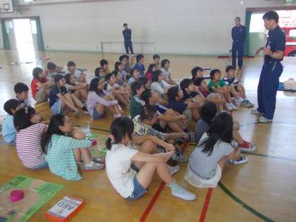 京都市消防局の方々に来ていただき,体育館にて「普通救命講習」の授業を受けました。人体模型や簡易模型を使って,心肺蘇生やAEDの使い方を実習しました。命を守るための実技講習に,子どもたちは真剣に取り組んでいました。