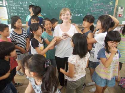 ALTとして本校でわかりやすく英語を教えていただいたウェンディ先生と,お別れすることになりました。最後の授業の後で記念撮影をすると,いっそう名残惜しくなりました。休み時間には,サインをねだる子ども達に囲まれておられました。