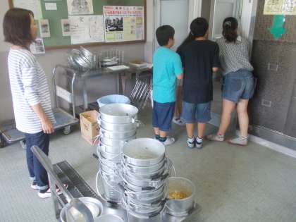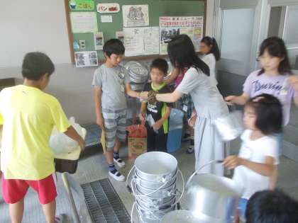 毎月7日と8日はパクパクの日です。時間内におかずとご飯(水曜日はパン)をクラス全員が完食して食缶を返却すると,給食委員からシールをもらえます。シールは,クラスに配ってある台紙に貼るのです。6年生の給食委員からシールを受け取る給食当番は,とても嬉しそうですね。全学級の返却を確認すると,給食委員会の当番活動が終わります。パクパクの日は,いつも早く終わります。