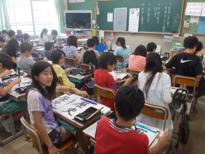 6年2組の金曜日の午後は習字でした。今回の課題の『歴史』をバランスよく書くために,画数の多い『歴』はやや細く書き,画数の少ない『史』は太く力強く書くようにアドバイスすると,バランスを取ることに成功した児童がたくさんいました。一本の筆で太さを変えて書くことができるのが,毛筆の魅力でもあります。