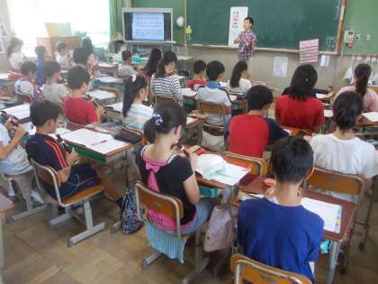 朝の会では,スピーチ・音楽などを毎日取り組んでいます。この日の6年生は,1組がリコーダー,2組が合唱でした。