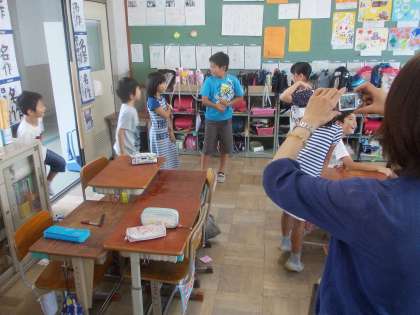 桂校のなかよしタイムは,中間休みに縦割りグループで,中庭・担当の先生の教室・運動場・体育館で遊ぶというものです。6年生のリーダーさんが場所や遊びの調整をして,準備もしてくれました。低学年の児童を迎えに行くのも高学年の仕事でした。