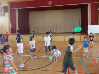 桂校のなかよしタイムは,中間休みに縦割りグループで,中庭・担当の先生の教室・運動場・体育館で遊ぶというものです。6年生のリーダーさんが場所や遊びの調整をして,準備もしてくれました。低学年の児童を迎えに行くのも高学年の仕事でした。