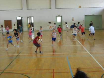 今日は2年1組の子ども達を,運動委員会の6年生5人が追いかけました。