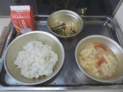たいよう学級が全員揃って一番乗りで返却に来ました。スタミナがつく夏向けの献立でした。