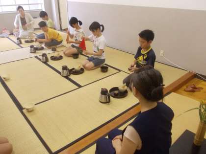 2年生というのは,昨年から習っている6年生のことです。盆略点前も堂に入ってきました。お客様は,1年生です。