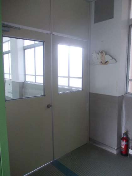 図書室前に扉が新設され,廊下にはじゅうたんが敷かれました。コンピュータ室・二つの図書室・廊下も部屋の一部として使う『メディアセンター』への第一歩です。