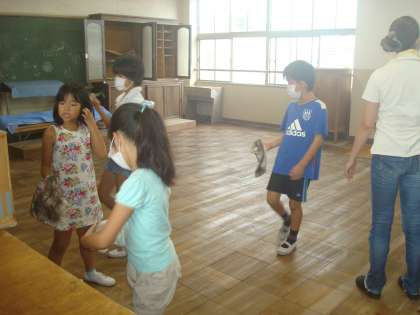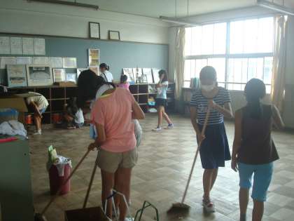 教室にある楽器を全て廊下に出し,ほうきで掃いて雑巾がけもしました。