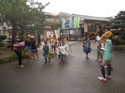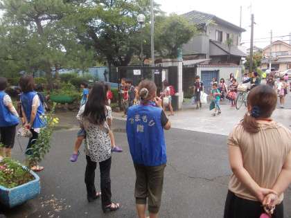 明け方の豪雨がやみ,夏休み明け登校初日は傘をささずに登校できました。見守り隊の登校指導に加え,ニコニコの日・PTA見守りとたくさんの出迎えの中,授業再開ができました。いつもありがとうございます。