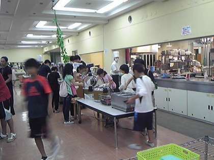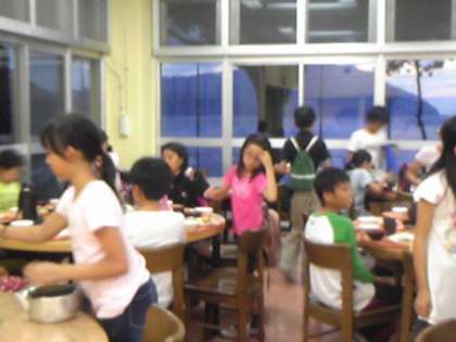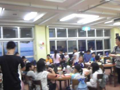 ・5年生は大浴場での入浴も終わり,おなかぺこぺこ,楽しみな夕食のバイキングです。「いただきます」残さずに全部食べられました。