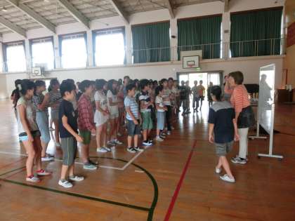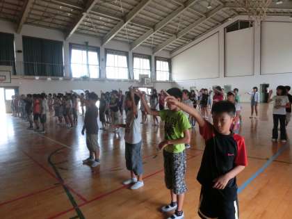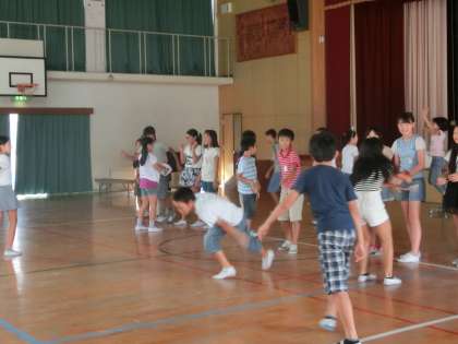 6年生は、桂校区からろう学校に通って勉強している友達と、今年で6年目の交流をしました。体育館で、一緒に手話で歌を歌ったり、ろう学校での子どもたちのための工夫された設備について学習したりしました。最後は、みんなでじゃんけんサッカー〈手話バージョン〉で楽しみました。