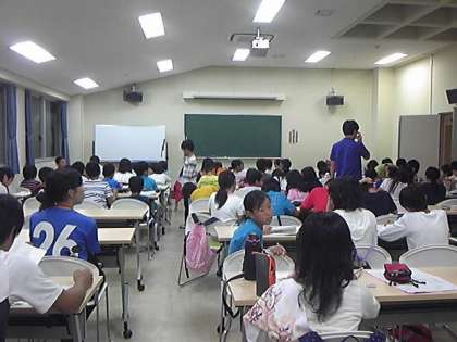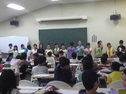 ・今日の振り返りです。いっぱい活動したので,少し眠い児童もいるようです。しっかりと反省をして,明日に備えたいと思います。
