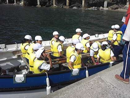・さあ,いよいよカッター漕艇が始まりました。みんな心と体をひとつにしてがんばってボートを操縦します。
