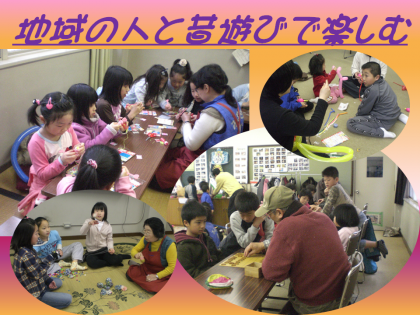 昨日にふれあいサロンで,社会福祉協議会や民生児童委員協議会が中心になって子どもたちに,お手玉や将棋,ビーズなどのいろんな遊びを教えてもらいながら楽しんで遊びました。