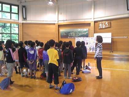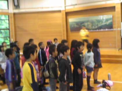 ・4年生はみさきの家での活動をすべて終えて,退所式を行いました。さあ,これから鳥羽水族館の見学に出発します。