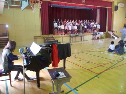 5年生は11月8日(土)京都コンサートホールで行われる『学童音楽会』に出演します。前日はかがやきフェスティバルですので,かがやきフェスティバルのリハーサルが終わった後に,学童音楽会のリハーサルをしました。