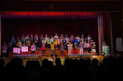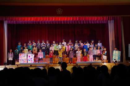 1年生は生活科の学習でアサガオの種まきをして,5月から毎日水やりをして大切に育ててきました。アサガオは少しずつ成長していき,きれいな花を咲かせて,たくさんのタネをつけました。音楽で学習した季節の歌と共に,1年生が観察したいろんなアサガオの姿を紹介しました。