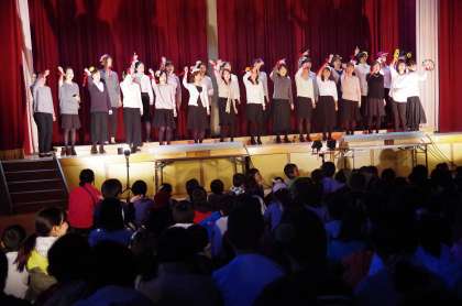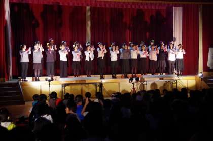 『ハナミズキ』は手話を使い,『恋するフォーチュンクッキー』は少しダンスも入れながら楽しく歌ってくださいました。かがやきフェスティバルの舞台でコーラスができること・一緒に練習に励んできたメンバーに感謝しながら,輝いた様子をみせてくださいました。