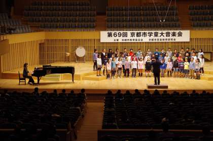 スクールサポーターの森川紋先生の伴奏,野村英之先生の指揮で,『翼を抱いて』を熱唱しました。