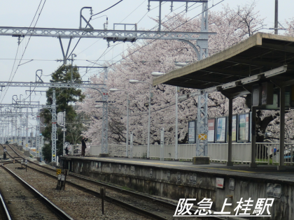 天神川に続いて,阪急嵐山線の上桂駅の桜も見事です。駅ホームの両側にきれいに咲いていました。